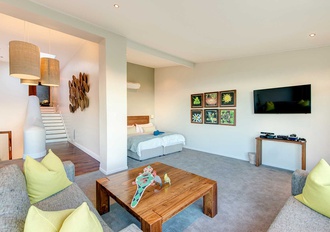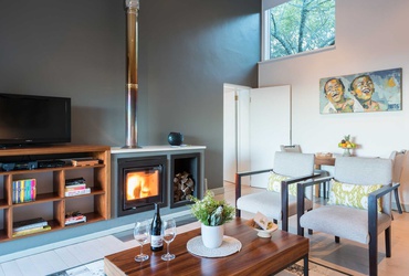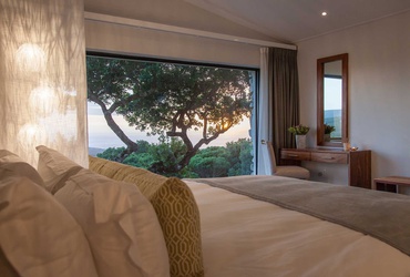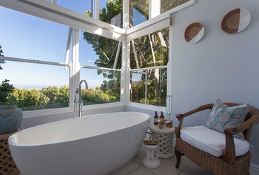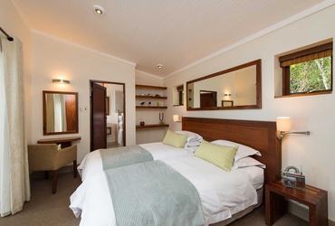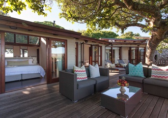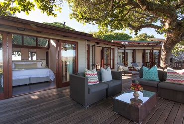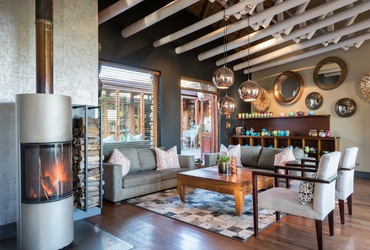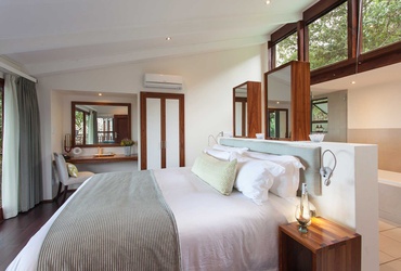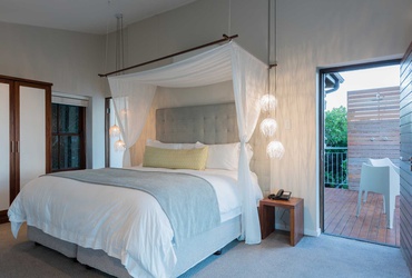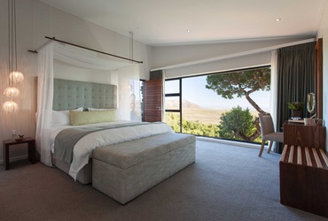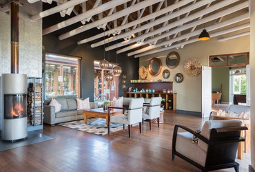 A Symphony of Form and Colour, true to its name, the warm and welcoming Garden Lodge is set amongst an Eden of beautifully landscaped fynbos gardens and indigenous trees. Fashioned from stone, thatch and timber, the Garden Lodge reflects African warmth with an intercontinental twist, blending perfectly into the surrounding landscape.