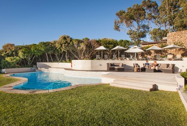The curved lines, high beamed ceilings and endless windows enhance the sensation of light, freedom and natural flow and make full use of the incredible sweeping views across mountain and sea. An elegant restaurant, spacious lounge, beauty salon, library and children’s entertainment room ensure that all needs are satisfied. The wooden deck, terrace and superb pool area extend the interior space into the outdoors allowing sun seekers and nature lovers to make the most of the rejuvenating environment.